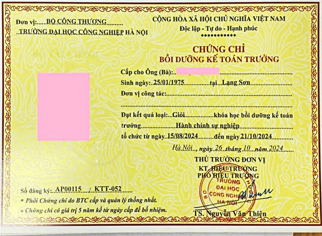 Và bằng kế toán trưởng là do bộ tài chính cấp phải không ạ.